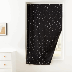 Portable Blackout Curtain Shade: Portable blackout shades like this one help create a darker, calmer sleep environment wherever you are. The adjustable Velcro tabs make it easy to fit different window sizes, and the suction cups allow for quick setup on smooth glass surfaces. They’re lightweight, packable, and can also help reduce outside noise — a simple way to support solid naps and earlier bedtimes during busy holiday schedules.